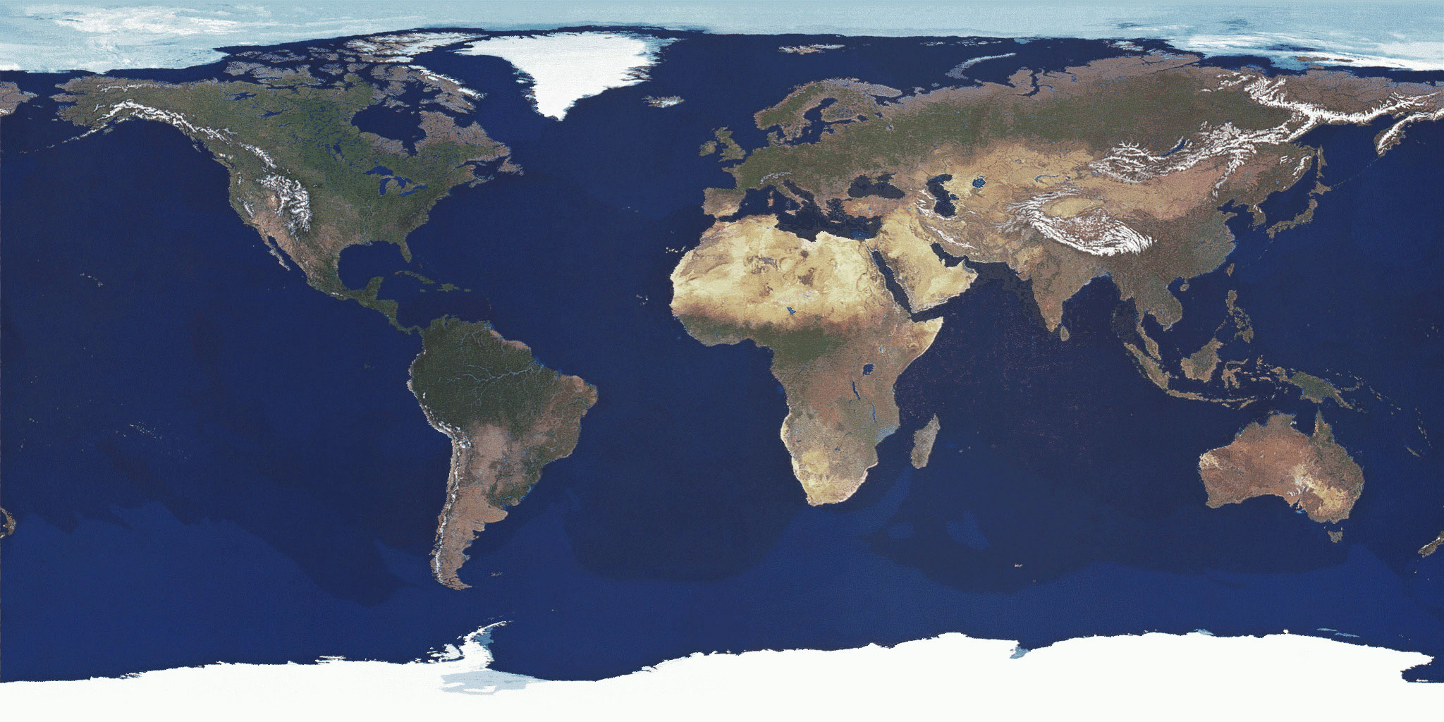 | Revised surface maps of Earth with atmosphere and without atmosphere for Starry Night. Revised 1/8/2001, better cloud mapping and improved color realism! Both maps are now 2048x1024 pixels in size. To work around a bug in Starry Night, you might need to rename these images to Earth_atmos.pct and Earth.pct. | |