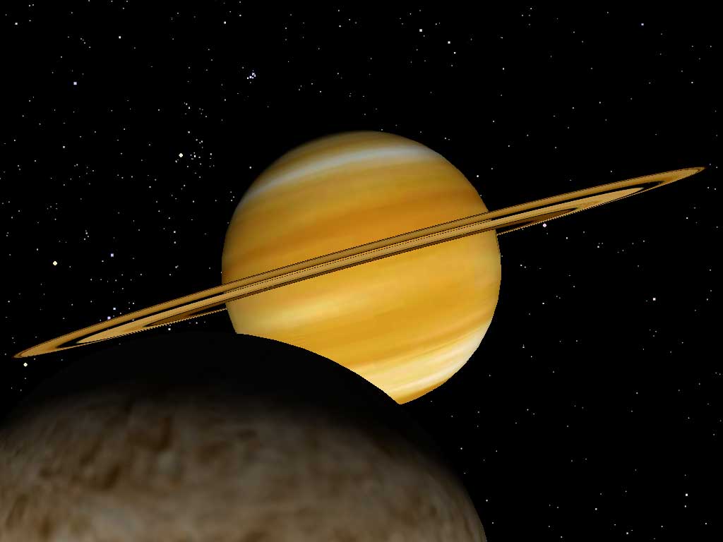 Saturn, from 167 km above its satellite Mimas, at 14:00 UTC, November 1, 2000 |