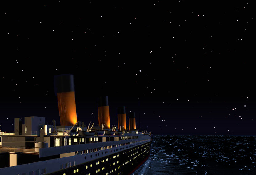| The RMS Titanic and the sky five minutes before the ship struck the iceberg (image credits) |