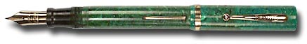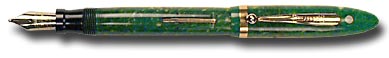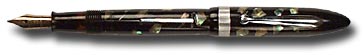 As far as I was concerned, the "Balance" aspect of this model was just another marketing ploy—until I wrote with one and felt the light perfection of its strokes on paper, perfectly, well, yes, balanced. Those with the gold monotone nibs are just as nice as the flattops, and of course the two-toned "Feathertouch" nibs are even a step up from that. The Balance is the best-writing, most reasonably priced vintage fountain pen out there, bar none, whether it has the white dot or not. Right now, just this little abalone model and the long-but-not-oversized Jade Green Radite pen are in my collection. More will follow—seniors and "regular sized" will come, in the marbled and striated varieties. |